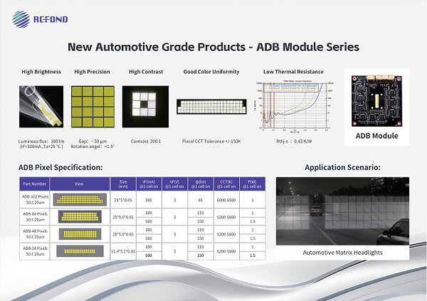 在自适应远光灯方面,凯发k8国际带来了支持16/24/36/48/84/102不同像素解决方案的车规级ADB矩阵光源模组,可灵活适配不同车型定位与设计需求,依托微米级像素间距的精细分区照明能力,能够实现全路况下的精准光束控制;在动态规避眩光的同时,为驾驶员提供最佳照明效果,进而提升行车安全性。
